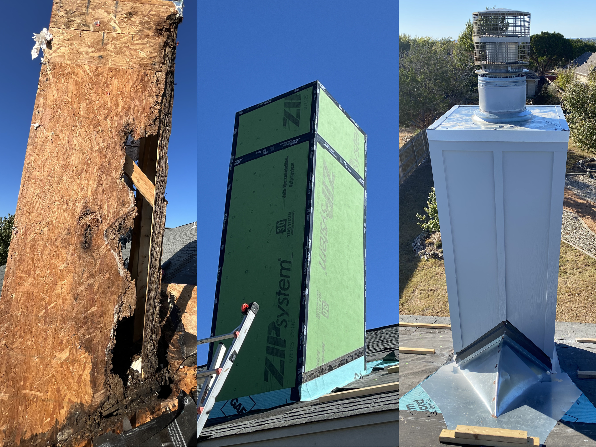 Chimney redone with hardy board and batten
